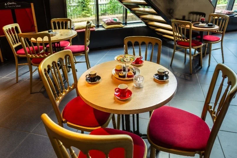 Het theatercafé (ook wel foyer genoemd) staat in verbinding met de theaterzaal en vormt de ideale ontmoetingsplek tijdens pauzes, lunches, diners en borrels. Handig voor de catering, en genoeg plek voor banners of een beursstand. Ook kan deze ruimte apart gehuurd worden, dus zonder theaterzaal.